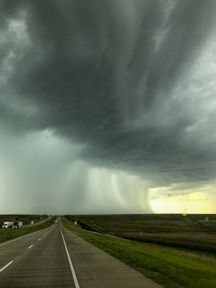 But first a wild bit of Texas weather we drove into last summer, and a foxy friend we saw up in the Colorado high country, to break up the mood.