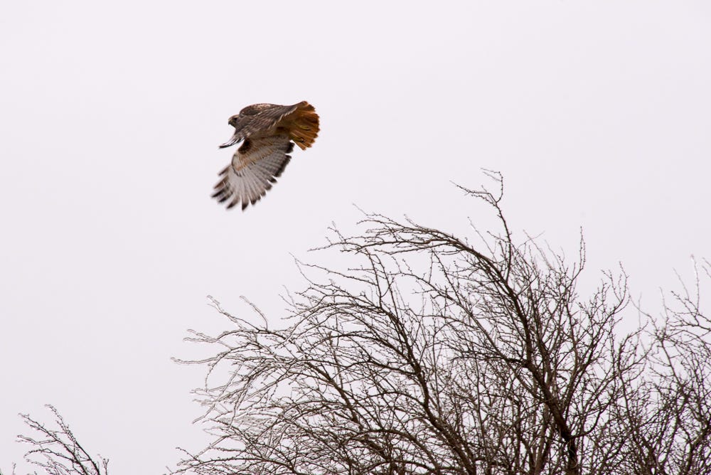 a little happy moment with this red-tailed hawk, who Steve and I happened upon during an ice storm in Oklahoma a while back.